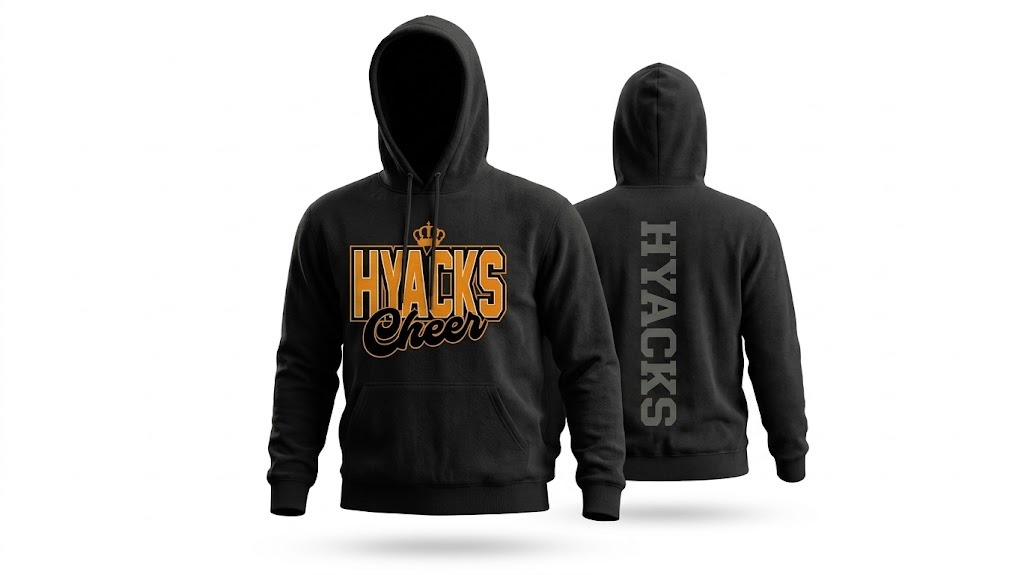 Elevate your sideline style and off-field comfort with the Hyacks Football Cheer Performance Hoodie. Designed for athletes and fans who want a bold, modern look, this hoodie combines premium warmth with custom Sublimation Squad detailing.